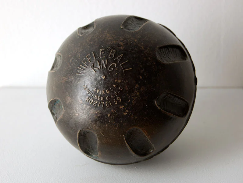 Wiffleball King 2005cast bronze4 x 4 x 4 Softball-sized wiffleball, cast in bronze with a black patina. View fullsize Sculpture & InstallationadminMay 20, 2005batch2